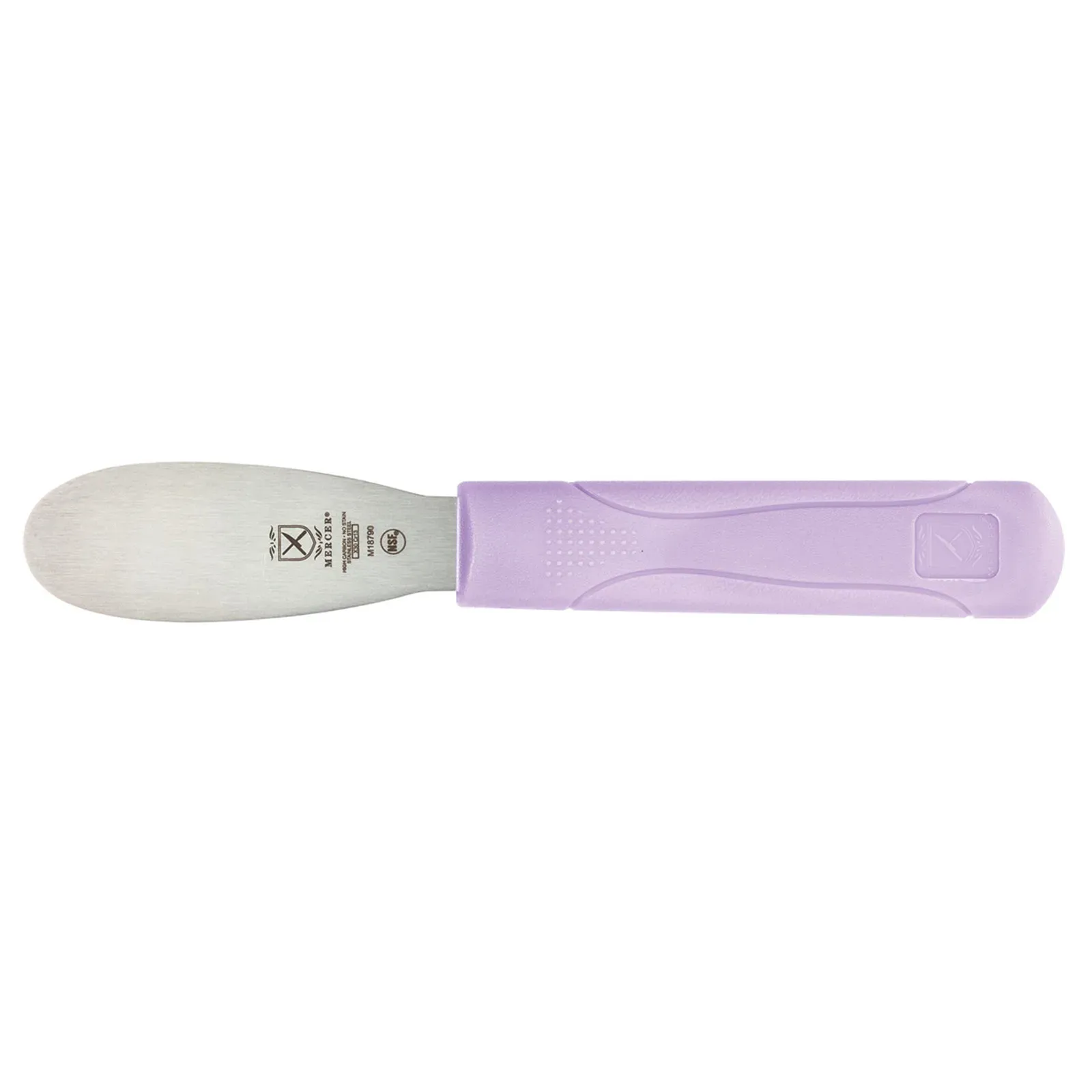 Elevate kitchen operations with the Mercer Culinary, M18790PU Sandwich Spreader. This spreader is designed to enhance efficiency and precision in commercial restaurant settings. With a 3-1/2" stain-resistant stainless steel blade and an overall length of 8-1/2", it offers exceptional durability and control. The molded polypropylene handle ensures a comfortable grip, allowing for effortless spreading of condiments, sauces, and toppings. The vibrant purple color of the handle is not only visually appealing but also serves as a dedicated use option, perfect for allergen or HACCP compliance. NSF certified, this spreader meets the highest standards of safety and sanitation. Whether you're running a sandwich shop, a deli, or a catering business, the Mercer Culinary Sandwich Spreader is a must-have tool for achieving consistent and professional results.