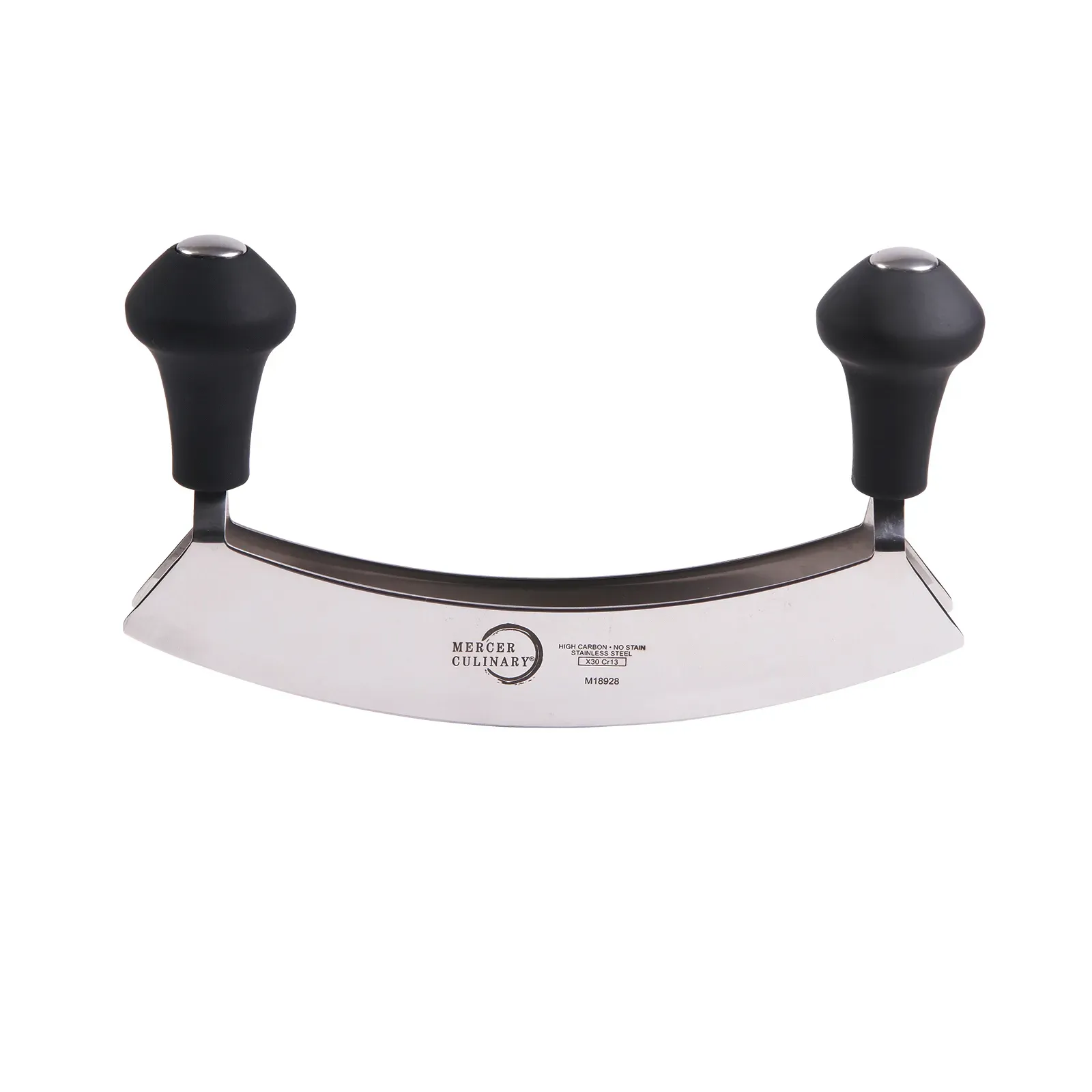 Enhance culinary precision with the Mercer Culinary, M18928, Knife, Rocker Mincing. This 8" Double Blade Mezzaluna is designed for commercial restaurant use, offering exceptional performance and durability. The Japanese high carbon steel blades ensure sharpness and longevity, allowing for effortless mincing and chopping of herbs, vegetables, and more. The double blade design increases efficiency, reducing prep time and ensuring consistent results. The dual thermoplastic rubber knob handles provide a comfortable and secure grip, allowing for precise control and reducing hand fatigue during extended use. Whether you're a professional chef or a culinary enthusiast, the Mercer Culinary, M18928, Knife, Rocker Mincing is a must-have tool for achieving professional-quality results in your commercial kitchen.