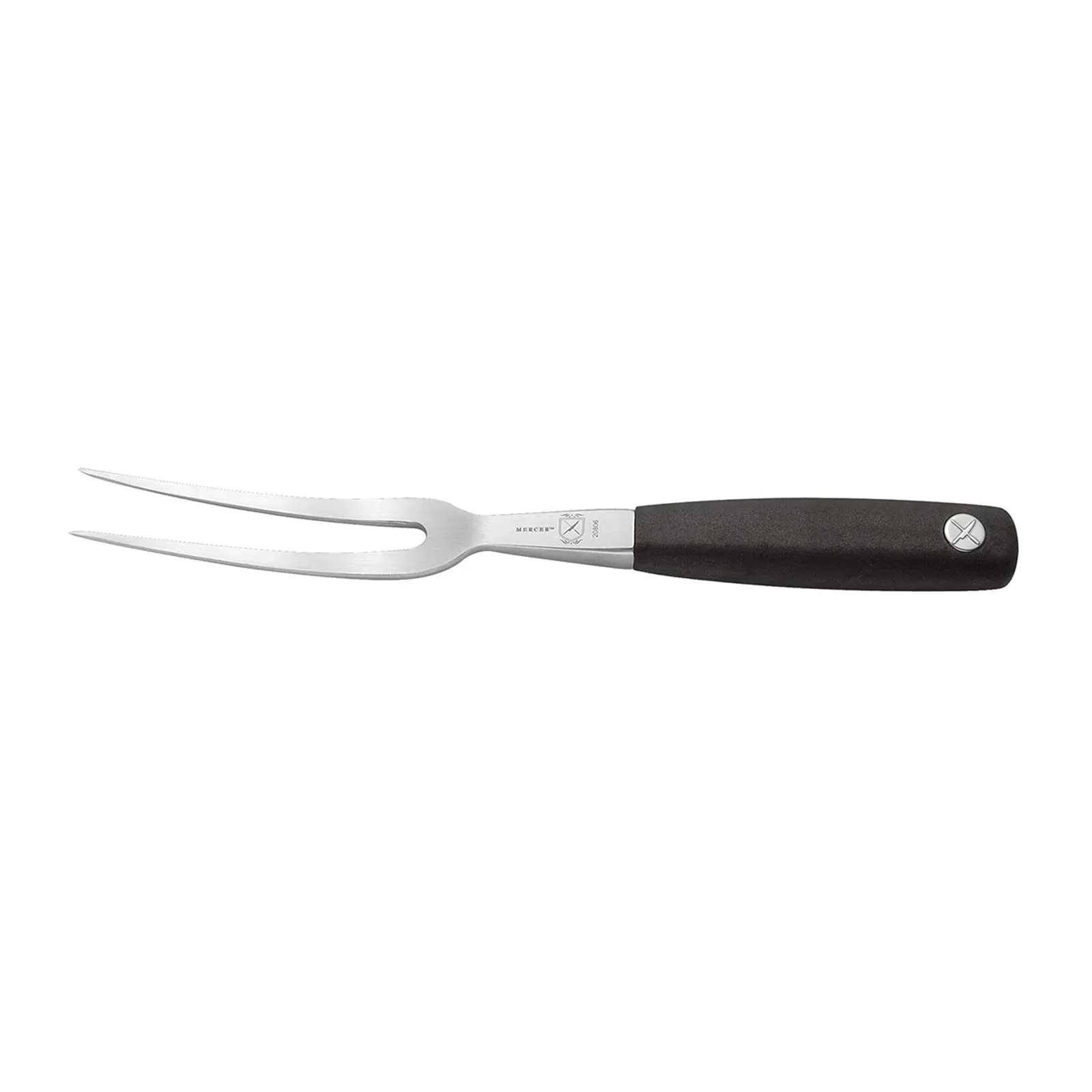 Maximize culinary precision with the Mercer Culinary, M20806, Fork, Cook's. This high-quality carving fork is designed to meet the demands of a commercial restaurant setting. With a 6" blade and an overall length of 10-1/2", this precision-forged fork is perfect for securely holding and maneuvering large cuts of meat. The blade is made from high carbon, no-stain German steel, ensuring durability and resistance to corrosion. The ergonomic Santoprene handle provides a comfortable grip, reducing fatigue during extended use. NSF certified, this fork meets strict standards for safety and sanitation. Whether you're carving a roast or serving up a juicy steak, this fork is a must-have tool for any professional chef or restaurant.