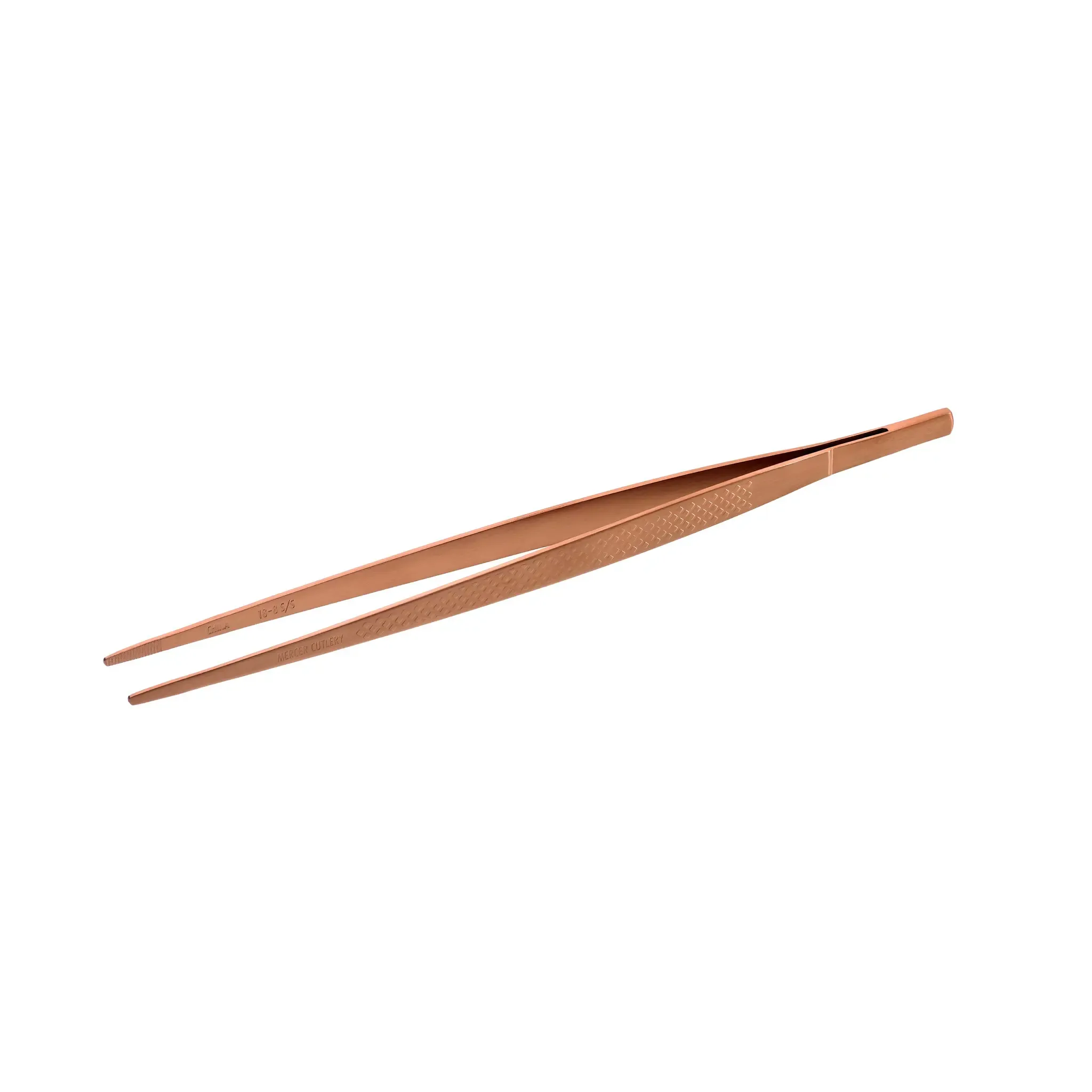 Maximize kitchen productivity with Mercer Culinary's M35230RG Tongs, Tweezer. These precision plus tongs are designed to enhance your restaurant's efficiency and performance. With a length of 9-3/8", these straight-style tongs provide optimal control and maneuverability, allowing you to handle delicate ingredients with ease. The dual raised cross-hatch grips on the outside ensure stability and prevent slippage, while the serrated tips on the inside offer a better grip, ensuring precise handling of even the most delicate items. Made from specially hardened 18/8 stainless steel, these tongs are built to withstand the demands of a commercial kitchen. The satin finish adds a touch of elegance, while the rose gold color adds a stylish flair to your culinary presentation. Elevate your kitchen's performance with Mercer Culinary's M35230RG Tongs, Tweezer.