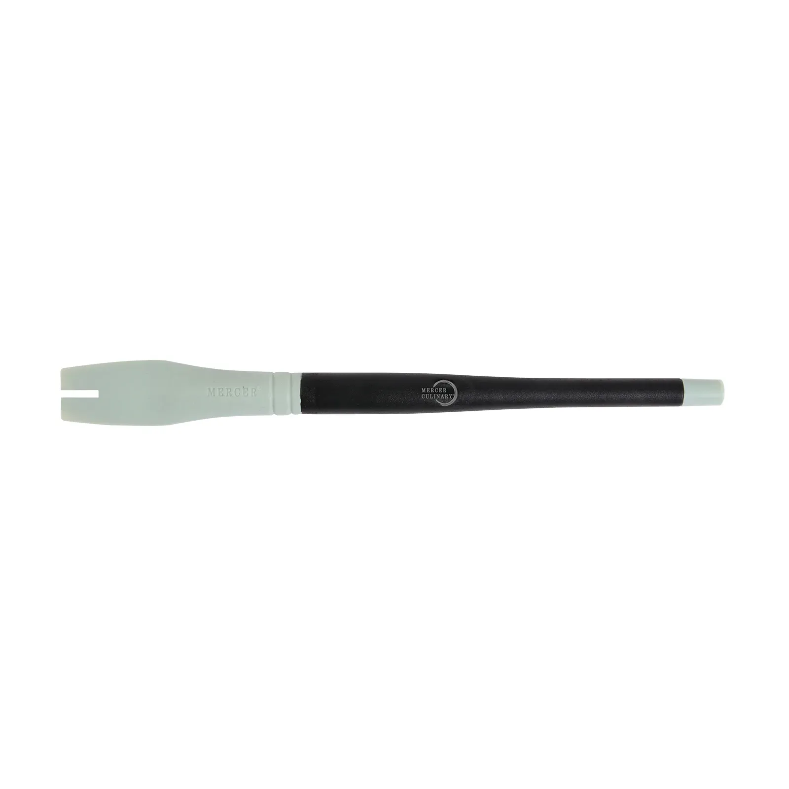 Equip your kitchen for excellence with the Mercer Culinary, M35617 Plating Tool. This versatile tool is a must-have for any commercial restaurant. With its 2mm square notch and 7-5/8" overall length, it allows for precise and controlled plating, ensuring that every dish looks as good as it tastes. The 3/4"W brush head is made of 480F (250C) food-safe silicone, making it perfect for applying sauces, glazes, and other finishing touches. The tapered high temperature nylon handle with a textured surface provides a comfortable grip, even in the busiest kitchen environments. The color-coded brush head and handle tip make it easy to identify and prevent cross-contamination. Plus, it's dishwasher safe for easy cleaning.