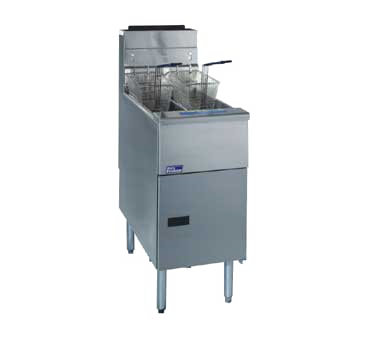 Revolutionize your cooking setup with the Pitco Frialator SG14T-S Fryer. This gas-powered, floor model fryer is designed to meet the demands of a busy commercial restaurant. With its split frypot, you can simultaneously cook different types of food, increasing efficiency and productivity in the kitchen. Each tank has a capacity of 20-25 lbs of oil, allowing you to fry large quantities of food at once. The millivolt control ensures precise temperature regulation, resulting in perfectly cooked dishes every time. Made with stainless steel, this fryer is durable and easy to clean, making it ideal for a fast-paced restaurant environment. With a total BTU of 100,000, this fryer delivers powerful performance to meet the needs of high-volume cooking. NSF, CE, CSA Flame, and CSA Star certifications guarantee its safety and quality. Upgrade your kitchen with the Pitco Frialator SG14T-S Fryer and experience enhanced cooking capabilities.