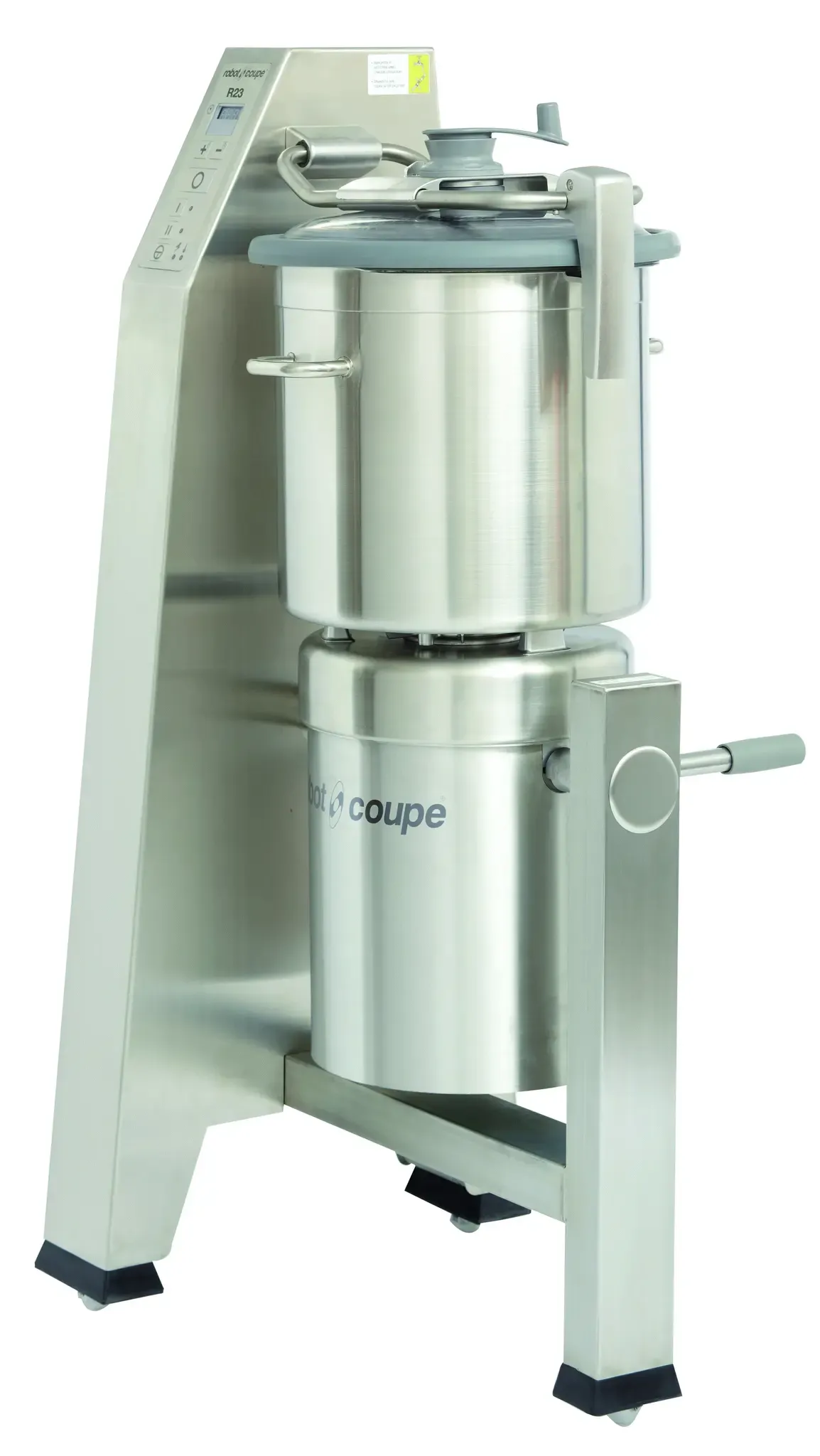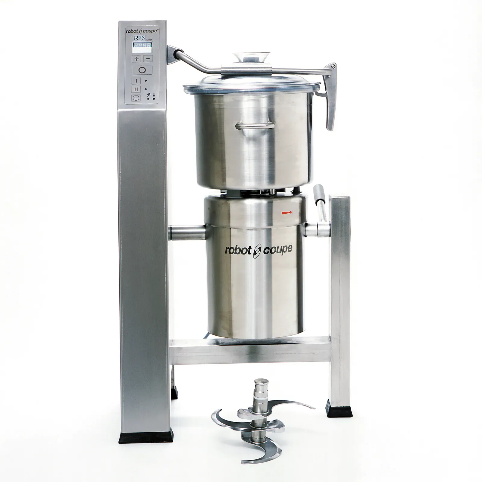 Cook with confidence and flair using the Robot Coupe R23T Mixer, Vertical Cutter VCM. This powerful kitchen appliance is designed to meet the demands of a commercial restaurant setting. With a 23-liter capacity, stainless steel tilt and removable cutter bowl, and a see-thru lid, this cutter/mixer is perfect for preparing large quantities of ingredients. The three smooth edge "S" blade assembly ensures efficient and consistent results every time. The digital control panel equipped with a 15-minute timer allows for precise control over the mixing process. Made with stainless steel construction, this mixer is durable and easy to clean, making it ideal for busy kitchens. With two speeds of 1800 and 3600 RPM and a 6 HP motor, the Robot Coupe R23T Mixer, Vertical Cutter VCM delivers exceptional performance. Trust in Robot Coupe, a reputable vendor known for their high-quality kitchen equipment. Upgrade your restaurant's kitchen with this reliable and efficient mixer.