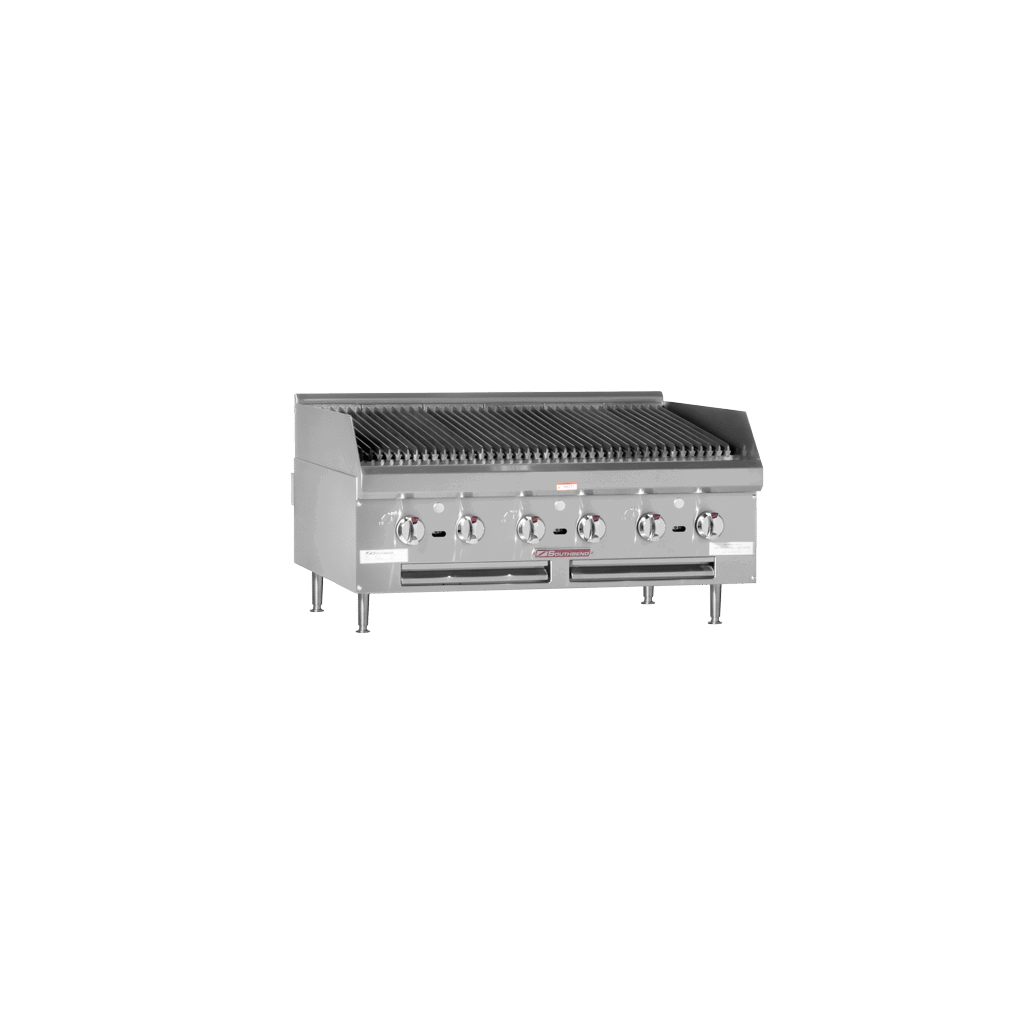 Fuel your passion for cooking with the Southbend HDC-48 Charbroiler. This gas countertop charbroiler is designed to meet the demands of a commercial restaurant kitchen. With its cast iron radiants and stainless steel burners, it delivers consistent heat distribution and excellent cooking results. The two-position, two-sided cooking grid allows for versatile cooking options, while the removable crumb tray makes cleaning a breeze. The stainless steel front, sides, and adjustable legs ensure durability and stability. With a powerful 160,000 BTU output, this charbroiler can handle high-volume cooking with ease. It is CSA Star, CSA Flame, cCSAus, and NSF certified, guaranteeing its safety and quality. Whether you're grilling steaks, burgers, or vegetables, the Southbend HDC-48 Charbroiler is the perfect addition to any commercial kitchen.