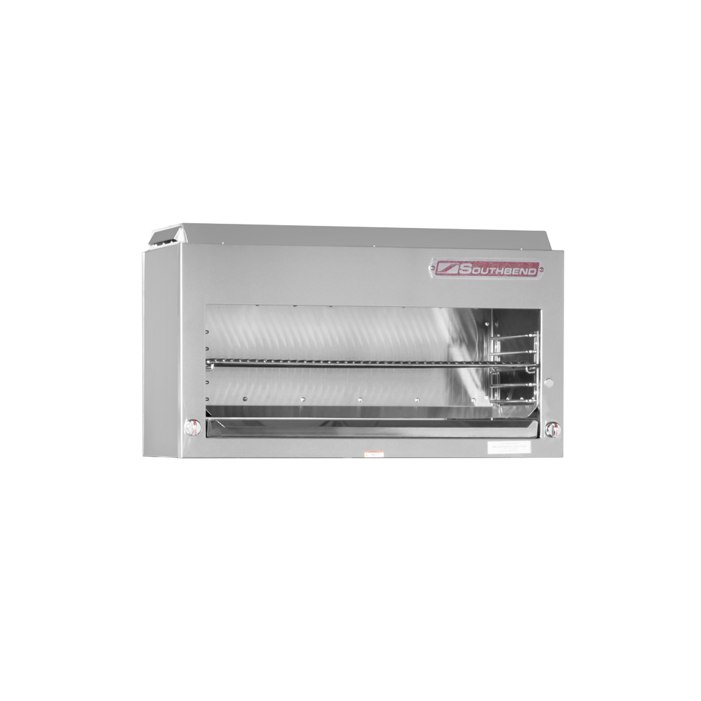 Create culinary magic with the Southbend P72-CM Gas Cheesemelter. This platinum heavy-duty cheesemelter is designed to meet the demands of a commercial restaurant kitchen. With its 72" size and riser mount, it provides ample space and easy installation. The cheesemelter features four infrared burners that ensure even heating and perfect melting every time. The five-position rack guides and chrome-plated rack allow for versatile cooking options and easy adjustment. The dual valve control gives you precise temperature control, while the 90-second preheat time ensures quick and efficient operation. The removable crumb tray makes cleaning a breeze, and the stainless steel construction guarantees durability and longevity. With 80,000 BTU of power, this cheesemelter is CSA and NSF certified, making it a reliable and safe choice for any commercial kitchen. Elevate your culinary creations with the Southbend P72-CM Gas Cheesemelter.