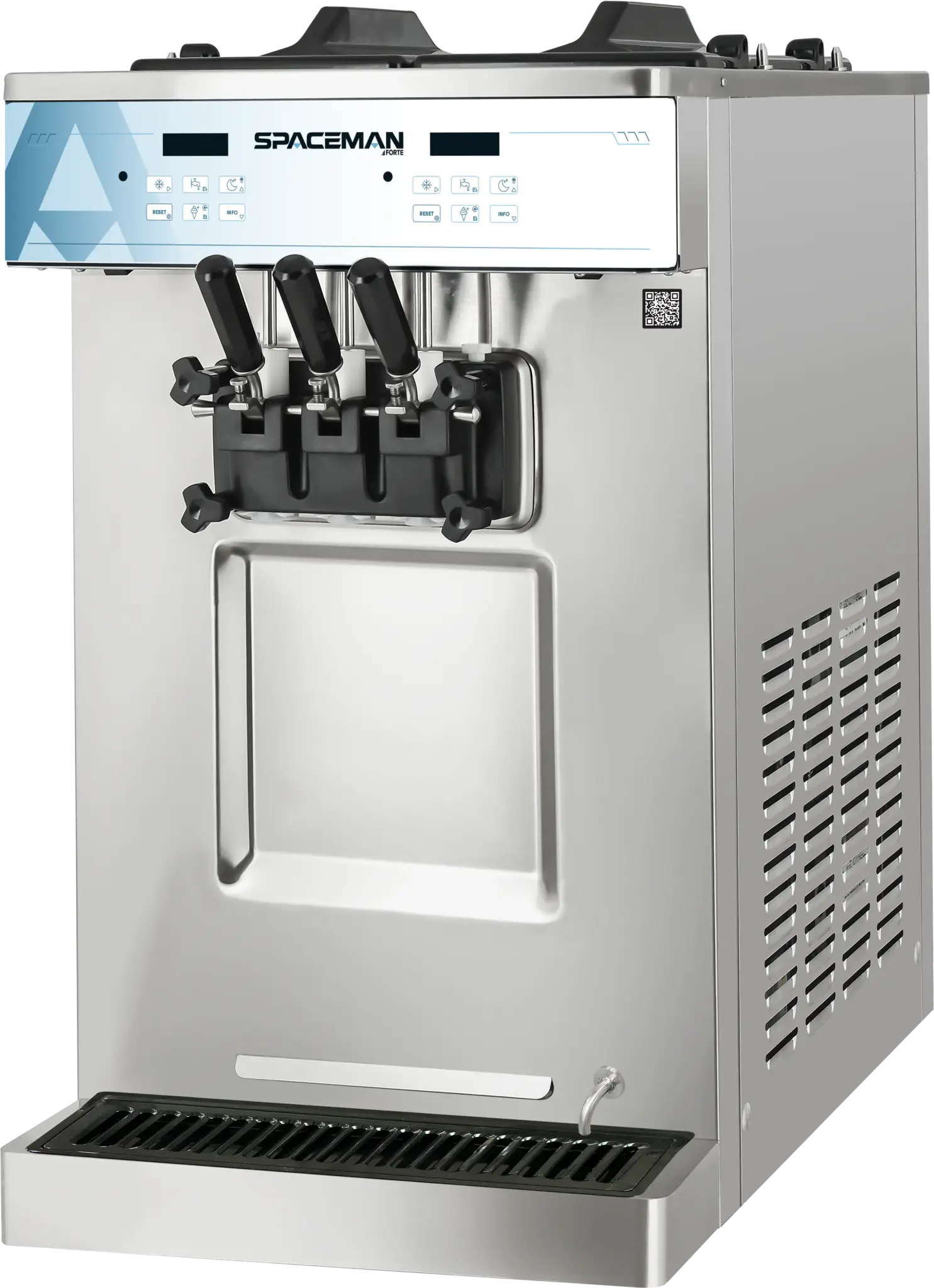 At the core of its performance is Spaceman’s patented 100% Controlled Contact Flooded Evaporator, engineered for maximum efficiency to achieve the industry’s fastest freeze-down and recovery times with smaller ice crystals and the smoothest, creamiest mouthfeel. Continuous improvements in design, driven by field feedback and R&D, provide greater structural integrity, reduce failure points, and improve serviceability. The advanced V5 single-piece auger eliminates unnecessary parts, ensures 100% evaporator wall contact, reduces cleaning time, and enhances consistency with the smallest ice crystals in the industry. The dual-system gravity-fed air inlet works in tandem with the V5 auger to optimize overrun and ensure superior texture and long-term product quality.