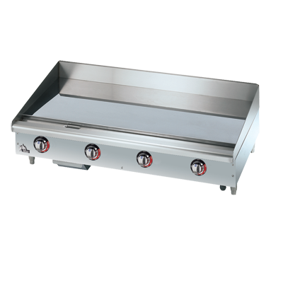 Transform your food service with the Star, 548CHSF, Griddle, Electric, Countertop. This heavy-duty griddle is designed to meet the demands of a commercial restaurant kitchen. With a 48" wide by 20-3/4" deep cooking surface, you'll have plenty of space to cook multiple items at once. The 1" thick chrome griddle plate ensures even heat distribution and excellent heat retention, allowing you to achieve perfect results every time. The snap-action thermostat with a temperature range of 150-450F gives you precise control over the cooking process. The 4000 watt element every 12" ensures fast and efficient heating. The welded steel frame with a stainless steel top and front, along with aluminized steel sides, ensures durability and easy cleaning. The splash guard and grease trough help to keep your kitchen clean and safe. With its high-quality construction and reliable performance, the Star, 548CHSF, Griddle, Electric, Countertop is a must-have for any commercial restaurant.