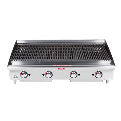 Achieve culinary excellence with the Star, 6148RCBF, Charbroiler, Gas, Countertop. This high-quality charbroiler from Star is designed to meet the demands of commercial restaurant kitchens. With its heavy stainless steel radiants and cast iron broiling grates, this charbroiler ensures even heat distribution and excellent cooking results. The 48" wide cooking surface provides ample space for grilling a variety of meats and vegetables, while the adjustable manual controls every 12" allow for precise temperature control. The welded steel frame with a stainless steel top and front, along with aluminized steel sides, ensures durability and easy cleaning. The stainless steel water pan, splash guard, and grease trough help to maintain a clean and safe cooking environment. With a powerful 160,000 BTU output, this charbroiler delivers exceptional performance. Whether you're grilling steaks, burgers, or vegetables, the Star, 6148RCBF, Charbroiler, Gas, Countertop is the perfect addition to any commercial restaurant kitchen.