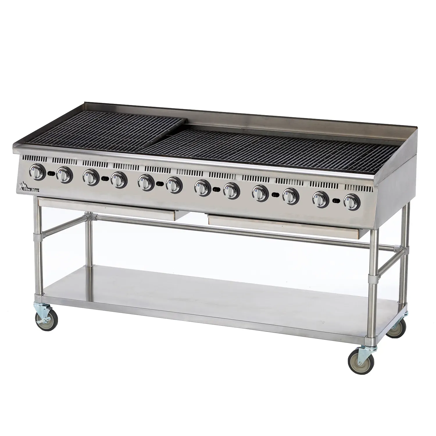 Upgrade your restaurant kitchen with the Star 8172RCBB Gas Countertop Charbroiler. This high-performance charbroiler is designed to meet the demands of a busy commercial kitchen. With a length of 72 inches, it provides ample cooking space to handle large quantities of food. The adjustable manual controls, located every 6 inches, give you precise control over the cooking temperature, ensuring perfect results every time. The steel radiants distribute heat evenly across the cooking surface, while the cast iron broiling grates provide excellent heat retention and create beautiful grill marks on your food. The stainless steel exterior not only adds durability but also gives the charbroiler a sleek and professional look. With a powerful 240,000 BTU output, this charbroiler can handle even the busiest of kitchens. Upgrade your kitchen with the Star 8172RCBB Gas Countertop Charbroiler and experience the difference in performance and quality.