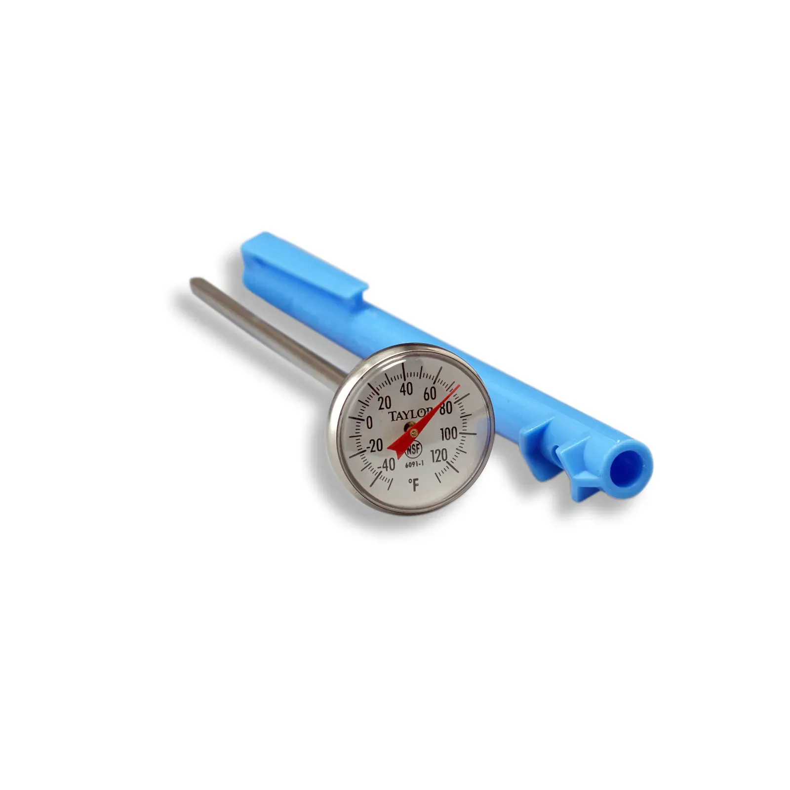 Transform solutions with the Taylor Precision, 6091N, Pocket Thermometer. Designed for commercial restaurant use, this thermometer is a must-have tool for ensuring food safety and quality. With a temperature range of -40° to 120°F and an accuracy of +/- 2°F, you can rely on its precise readings to maintain optimal cooking and storage conditions. The 1" standard grade dial and high visibility graphics make it easy to read, while the shatterproof Lexan plastic lens and stainless steel stem ensure durability and longevity. The plastic case even features a built-in patented recalibration wrench for convenient adjustments. Trust Taylor Precision for accurate and reliable temperature measurements in your restaurant.
