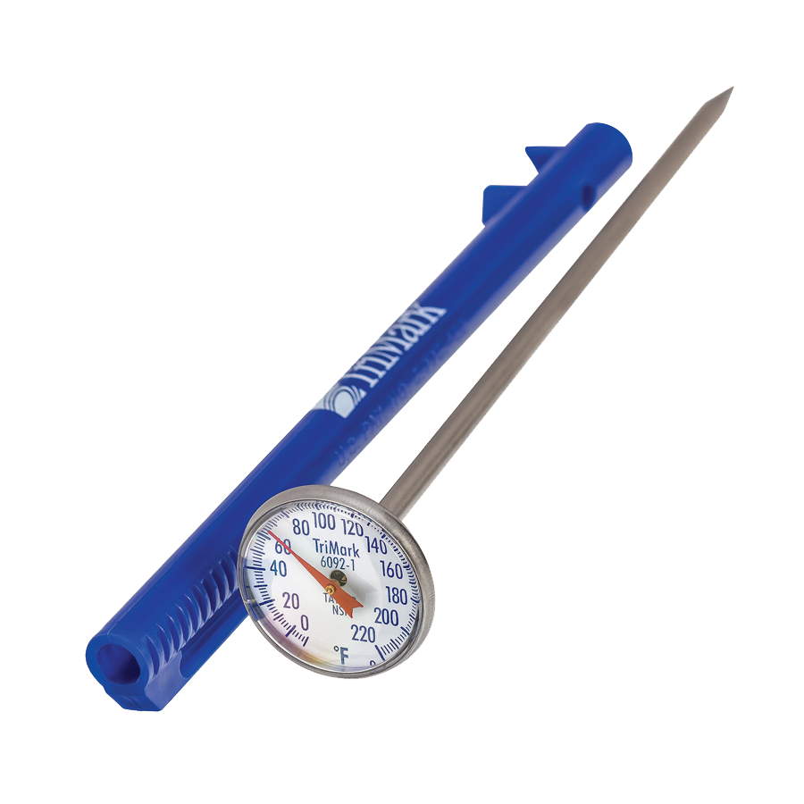 Innovate measurements with the Taylor Precision, 6092NBLBC, Thermometer, Pocket. This 1" dial thermometer is a must-have for any commercial restaurant. With a temperature range of 0° to 220°F (-10° to 100°C), it ensures accurate readings for all your culinary creations. The 5" stem allows for easy insertion into food, while the pocket sleeve with a patented built-in calibration feature ensures precise measurements every time. The shatterproof lens and stainless steel construction guarantee durability, even in the busiest kitchen environments. Plus, the blue color coding makes it perfect for monitoring fish temperatures, ensuring food safety and compliance with HACCP guidelines. NSF certified, this thermometer is a reliable tool that meets the highest standards of quality and safety.