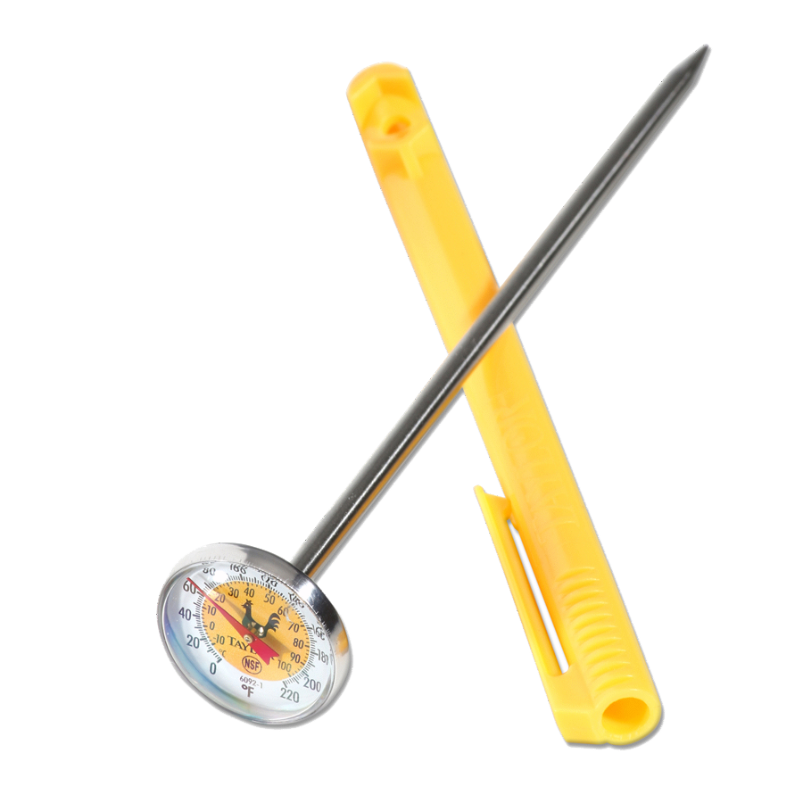 Innovate measurements with the Taylor Precision, 6092NYLBC, Pocket Thermometer. Designed specifically for commercial restaurant use, this thermometer is a must-have tool for ensuring food safety and maintaining HACCP standards. With a temperature range of 0° to 220°F (-10° to 100°C), it provides accurate readings for a variety of culinary applications. The 1" dial and 5" stem make it easy to insert into meats, soups, and sauces, while the pocket sleeve with a patented built-in calibration feature ensures precise measurements every time. The shatterproof lens and stainless steel construction guarantee durability in a fast-paced kitchen environment. This thermometer is color-coded yellow for poultry, allowing for quick identification and preventing cross-contamination. NSF certified and sold in case quantities of 6, the Taylor Precision Pocket Thermometer is the ideal choice for professional chefs and restaurant owners who prioritize food safety and quality.