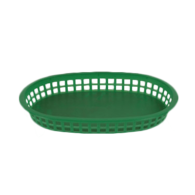 Simplify processes with Thunder Group's PLBK1034G Fast Food Basket. Designed for commercial restaurant use, this oblong, stackable basket is a game-changer in the food industry. With a length of 10-3/4 inches, it provides ample space for serving a variety of dishes. Made from durable polypropylene, this basket is built to withstand the demands of a busy restaurant environment. Its top rack dishwasher safe feature ensures easy and efficient cleaning, saving valuable time and effort. The vibrant green color adds a touch of freshness to any table setting, enhancing the overall dining experience. Elevate your restaurant's efficiency and presentation with the Thunder Group PLBK1034G Fast Food Basket.