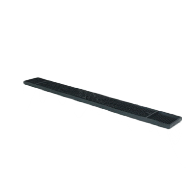 Introducing the Thunder Group PLBM027BL Bar Mat, the perfect addition to any commercial restaurant setting. This non-slip bar mat is designed to foster sustainability with its durable plastic construction and dual receptacle ends. With a size of 3-1/4" x 27", it provides ample space for bartenders to work efficiently and keep the bar area clean and organized. The black color adds a sleek and professional touch to any bar setup. Whether you're serving up cocktails or pouring draft beer, this bar mat is a must-have accessory. Trust Thunder Group, a reputable vendor known for their high-quality products, to deliver the reliability and functionality you need in a commercial restaurant setting.