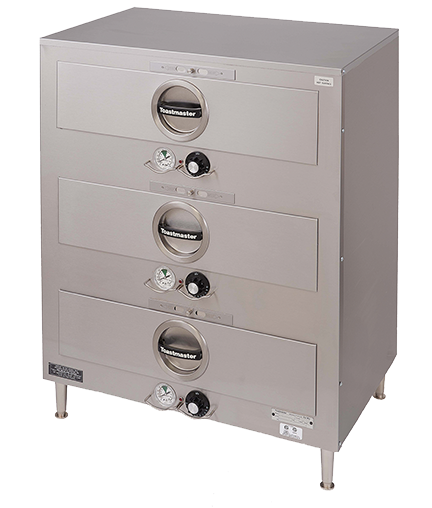 Ensure durability with the Toastmaster 3C84DT09 Warming Drawer, Free Standing. This food warming drawer unit is designed to withstand the demands of a commercial restaurant setting. With three spacious drawers, each capable of holding three 12" x 20" x 5" pans, you'll have plenty of room to keep your dishes warm and ready to serve. The thermostatic controls allow you to easily adjust the temperature to meet your specific needs, while the fully insulated design ensures efficient heat retention. Made in the USA with a stainless steel exterior finish, this unit not only looks sleek but is also built to last. The 4" legs provide stability and make it easy to clean underneath. Trust Toastmaster for reliable and high-quality warming solutions for your restaurant.