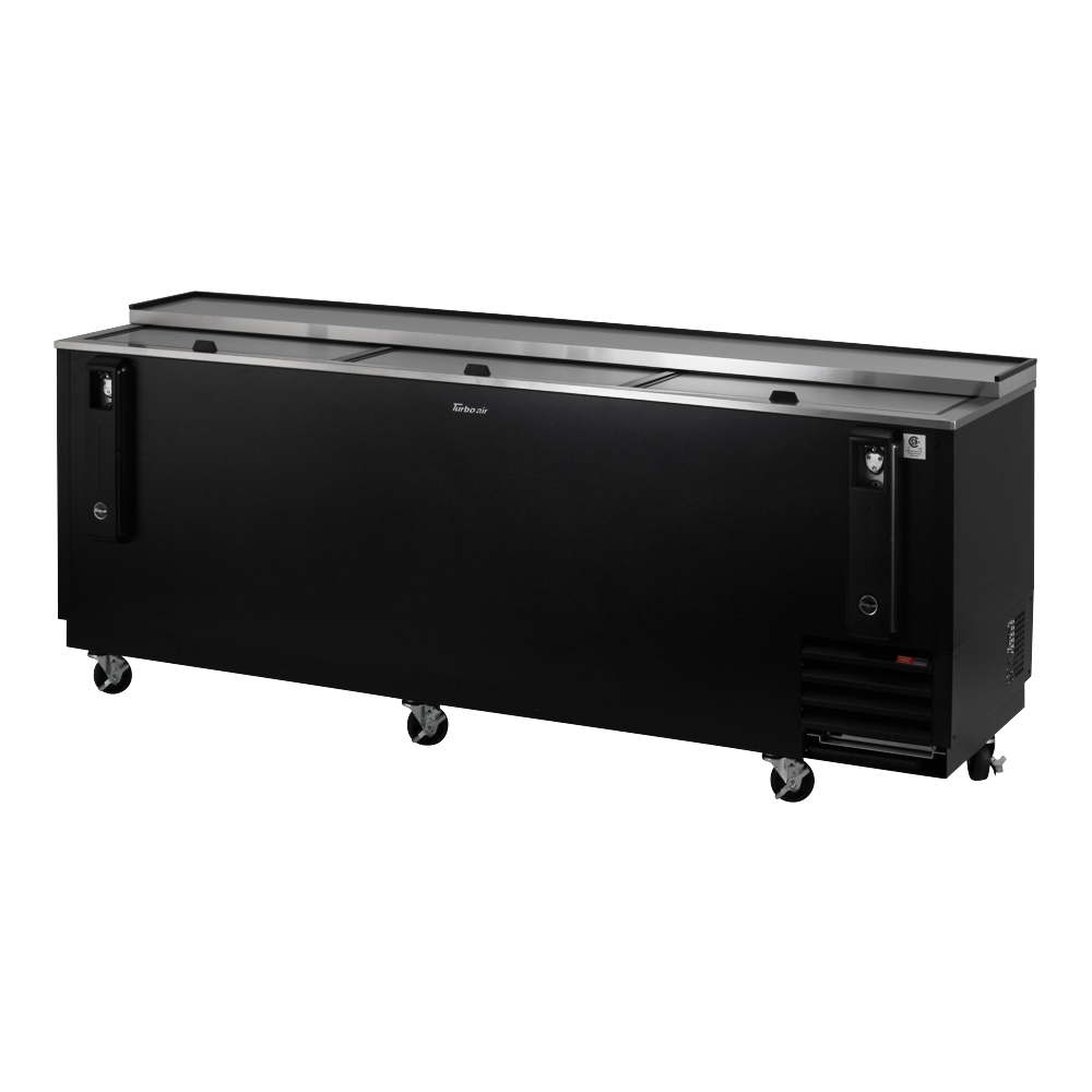 Deliver food perfection with the Turbo Air TBC-95SB-N Bottle Cooler. This sleek and efficient cooler is designed to meet the demands of a busy commercial restaurant. With a spacious 30.3 cu.ft. capacity and six adjustable dividers, you can easily organize and store a large quantity of bottles. The self-cleaning condenser ensures optimal performance and reduces maintenance needs, while the built-on removable bottle cap opener and catcher add convenience to your beverage service. The three sliding lids provide easy access to the contents, and the stainless steel countertop and lid offer durability and a professional look. The black laminated exterior and stainless steel interior walls and floor not only enhance the cooler's aesthetics but also make it easy to clean. With a side mount compressor and front breathing design, this cooler can be seamlessly integrated into your restaurant's layout. The Turbo Air TBC-95SB-N Bottle Cooler is equipped with R290 Hydrocarbon refrigerant, ensuring energy efficiency and environmental friendliness. Trust Turbo Air to deliver the perfect cooling solution for your restaurant.