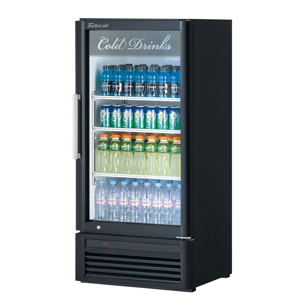 Unleash gastronomic brilliance with the Turbo Air TGM-10SD-N6 Refrigerator Merchandiser. This Super Deluxe refrigerated merchandiser is perfect for commercial restaurant use, offering a spacious one-section design with 8.12 cu. ft. of storage capacity. The self-contained unit features a self-cleaning condenser device, ensuring optimal performance and reducing maintenance needs. The double pane Low-E hinged glass door is not only visually appealing but also equipped with a lock for added security. Inside, you'll find three adjustable PE coated wire shelves, providing flexibility for organizing and displaying your products. The door-activated standard sound system and LED interior lighting create an inviting atmosphere for customers. With a digital thermometer control, door opening alarm, and self-diagnostic monitoring system, you can easily monitor and maintain the perfect temperature for your perishable items. The Turbo Air TGM-10SD-N6 Refrigerator Merchandiser also features an automatic fan motor delay and Turbo cooling function, ensuring efficient operation and preserving the freshness of your products. With its sleek design and reliable performance, this merchandiser is a must-have for any commercial restaurant.