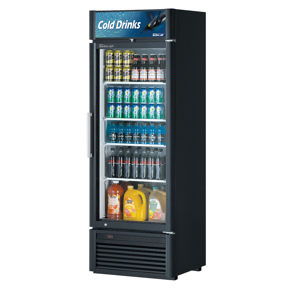 Enhance your commercial kitchen with the Turbo Air TGM-20SD-N6 Refrigerator Merchandiser. This super deluxe refrigerated merchandiser is perfect for showcasing your products while keeping them fresh and cool. With a spacious one-section design and 16.01 cu. ft. capacity, you'll have plenty of room to display a wide variety of items. The self-contained and self-cleaning condenser device ensures optimal performance and easy maintenance. The double pane Low-E hinged glass door with a lock provides both visibility and security. The adjustable PE coated wire shelves allow for flexible storage options. The exterior digital thermometer and controller, along with the door opening alarm, ensure precise temperature control and prevent spoilage. The self-diagnostic monitoring system and automatic fan motor delays detect malfunctions and provide early warnings. The Turbo cooling feature ensures quick and efficient cooling. The LED LGP sign panel and interior lighting beautifully illuminate your products. With its white interior and customizable exterior cabinet color, this merchandiser will seamlessly blend into your restaurant's aesthetic. The bottom mount compressor and R600a Hydrocarbon refrigerant ensure energy efficiency and environmental friendliness. Trust Turbo Air to deliver high-quality refrigeration solutions for your commercial kitchen.