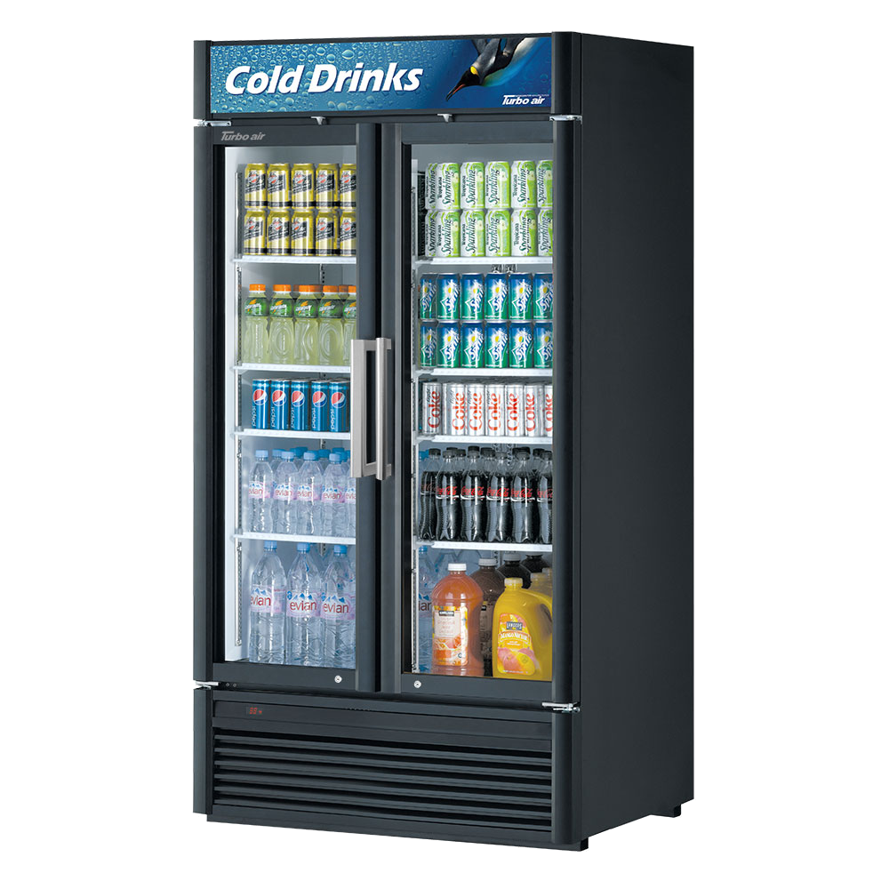 Cook with confidence with the Turbo Air TGM-35SD-N Refrigerator Merchandiser. This super deluxe glass merchandiser refrigerator is perfect for commercial restaurant use. With its two-section design and 29.06 cu. ft. capacity, you'll have plenty of space to store and display your products. The self-contained and self-cleaning condenser device ensures optimal performance and easy maintenance. The double pane Low-E glass doors come with locks for added security. The eight adjustable PE coated wire shelves allow for flexible storage options. The exterior digital thermometer and controller make it easy to monitor and adjust the temperature. Plus, the door opening alarm and self-diagnostic monitoring system provide peace of mind. The Turbo Air TGM-35SD-N also features an automatic fan motor delay, hot gas condensate system, and Turbo cooling for efficient operation. The LED interior lighting and shadow-free LED LGP advertising panel create an attractive display. With its white interior and customizable exterior cabinet color, this refrigerator merchandiser is both functional and visually appealing. The bottom mount compressor and R290 Hydrocarbon refrigerant ensure energy efficiency. Cook with confidence and showcase your products with the Turbo Air TGM-35SD-N Refrigerator Merchandiser.