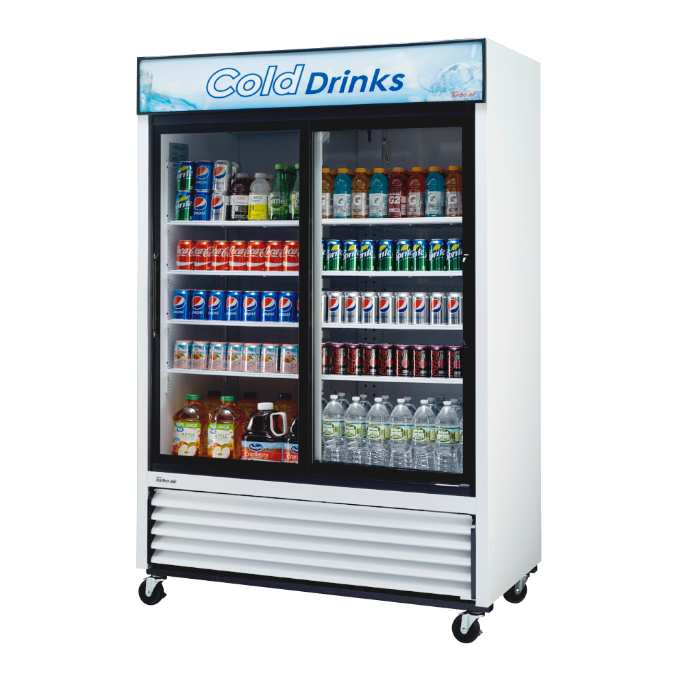 Transform your food service with the Turbo Air TGM-48R-N Refrigerator Merchandiser. This two-section refrigerated merchandiser is perfect for commercial restaurant use, offering a spacious 44.0 cu. ft. capacity to store and display your food and beverages. The unit features two double pane Low-E self-closing sliding glass doors, allowing easy access while keeping the cold air inside. With LED interior and canopy lighting, your products will be beautifully illuminated, attracting customers' attention. The energy conserving fan control and hot gas condensate system ensure efficient operation and prevent condensation build-up. The eight adjustable PE coated wire shelves provide flexibility in organizing your items. The white cabinet with black trim adds a sleek and modern touch to your establishment. With a bottom mount compressor and R290 Hydrocarbon refrigerant, this refrigerator merchandiser is not only reliable but also environmentally friendly. Trust Turbo Air to deliver high-quality refrigeration solutions for your commercial restaurant needs.