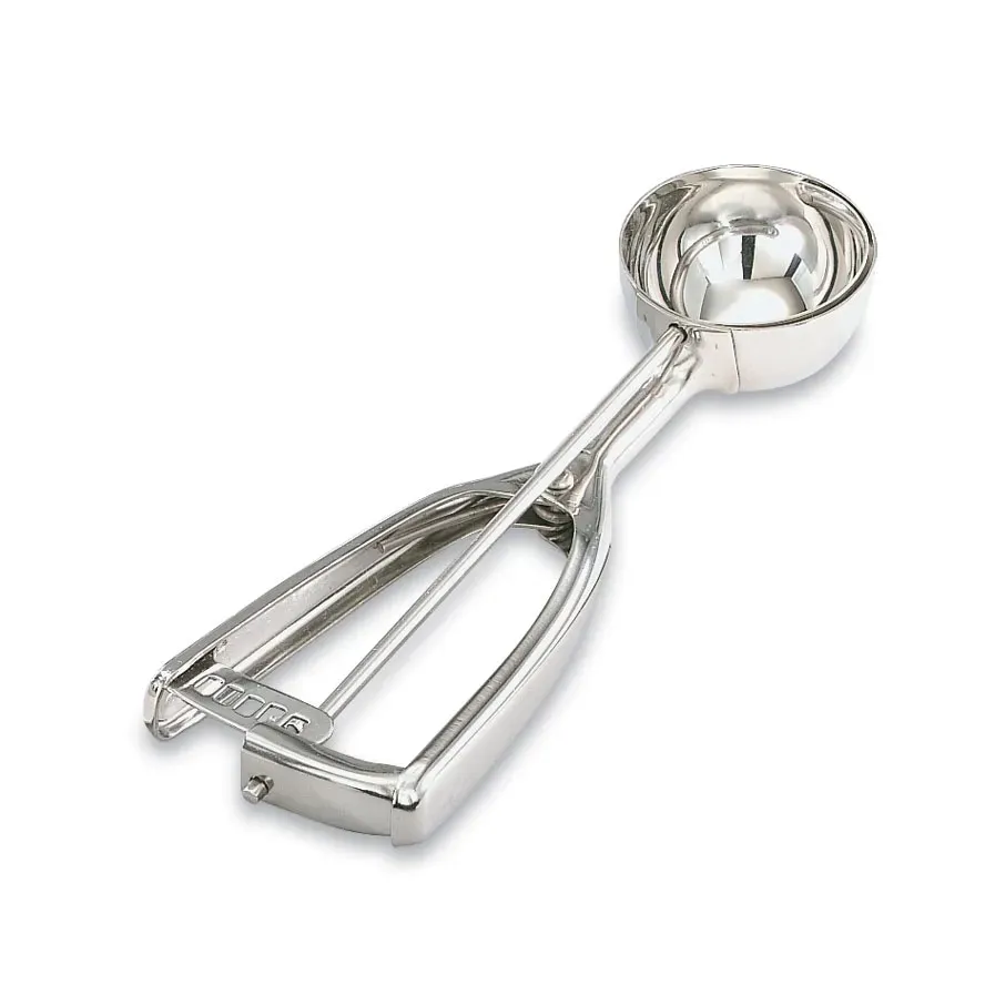 Cook with confidence and flair using the Vollrath, 47150, Disher, Standard Round Bowl. This stainless steel disher is a must-have tool for any commercial restaurant. With a round bowl size 8 and a 4 oz. capacity, it is perfect for portioning out consistent servings of ice cream, mashed potatoes, or cookie dough. The universal squeeze handle allows for easy operation, ensuring smooth and efficient scooping every time. Its durable construction ensures long-lasting performance, even in busy kitchen environments. Whether you're serving up desserts or creating perfectly portioned side dishes, the Vollrath, 47150, Disher, Standard Round Bowl is the reliable and efficient choice for any commercial kitchen.
