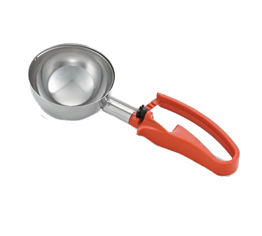 Introducing the Vollrath 47388 Disher, Standard Round Bowl - the perfect tool to craft culinary wonders in your commercial restaurant. This stainless steel scoop and shaft disher is designed for left or right-handed users, ensuring ease of use for all your kitchen staff. The one-piece orange color-coded handle is not only ergonomic but also adds a pop of color to your kitchen. With a generous 8 oz. capacity and a size of 4.3-5/8" diameter, this disher is ideal for portioning out consistent servings of mashed potatoes, rice, or other side dishes. Its durable construction and NSF certification guarantee its suitability for commercial use. Please note that this disher is not recommended for use with ice cream or hard products. Elevate your culinary creations with the Vollrath 47388 Disher, Standard Round Bowl.