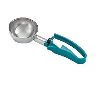 Elevate your dining experience with the Vollrath 47389 Disher, Standard Round Bowl. This high-quality disher is designed to enhance efficiency and precision in a commercial restaurant setting. With its one-piece teal color-coded handle, this disher is not only visually appealing but also ergonomically designed for both left and right-handed users. The stainless steel scoop and shaft ensure durability and longevity, making it a reliable tool for your kitchen. The 6 oz. size and 5.3-3/8" diameter of the scoop make it perfect for portioning out consistent servings of various foods. Whether you're serving mashed potatoes, rice, or even cookie dough, this disher will help you maintain portion control and presentation. Please note that it is not recommended for use with ice cream or hard products. Trust Vollrath, a reputable vendor in the industry, and invest in this Vollrath 47389 Disher to streamline your restaurant operations.