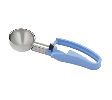 Cook with confidence and flair using the Vollrath 47394 Disher. This standard round bowl disher is designed to make your food preparation process efficient and precise. With a size of 14.2-3/8" diameter, this stainless steel scoop and shaft ensure durability and longevity, making it perfect for commercial restaurant use. The one-piece sky blue color-coded handle is not only ergonomic but also designed for both left and right-handed users, providing comfort and ease of use. Whether you're scooping mashed potatoes, portioning cookie dough, or serving side dishes, this NSF-approved disher is a reliable tool that will enhance your kitchen operations. Please note that it is not recommended for use with ice cream or hard products. Trust Vollrath for quality and efficiency in your restaurant kitchen.