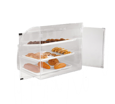 Realize kitchen dreams with the Vollrath ELBC-1 Display Case. This Euro Curve Bakery Case is the perfect addition to any commercial restaurant, offering a sleek and stylish countertop design. With dimensions of 29-3/4"W x 24-1/8"D x 27-3/4"H, it can easily accommodate three 18" x 26" trays, allowing you to showcase a variety of pastries and baked goods. The clear acrylic rear door provides easy access for self-service, while also ensuring optimal visibility for customers. The ELBC-1 comes complete with three white 18" x 26" trays, making it a convenient and cost-effective solution for displaying your delectable treats. Whether you're running a bakery, caf , or restaurant, this Vollrath Display Case is a must-have for showcasing your culinary creations and enticing customers. Elevate your establishment's aesthetic and increase sales with the Vollrath ELBC-1 Display Case.