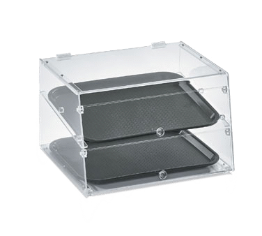 Cook with confidence and flair with the Vollrath KDC1418-2-06 Display Case. This countertop display case is perfect for showcasing your delectable pastries and desserts in a commercial restaurant setting. With its slant front and clear acrylic construction, customers will be enticed by the mouthwatering treats on display. The display case features two front and one rear lift-up doors, allowing for easy access to your creations. It accommodates two 14" x 18" trays, which are included with the case. The rubber feet ensure stability on any countertop surface. Designed by Vollrath, a trusted name in the industry, this display case is built to last and withstand the demands of a busy restaurant kitchen. Whether you're a bakery, cafe, or restaurant, the Vollrath KDC1418-2-06 Display Case is a must-have for showcasing your culinary masterpieces.