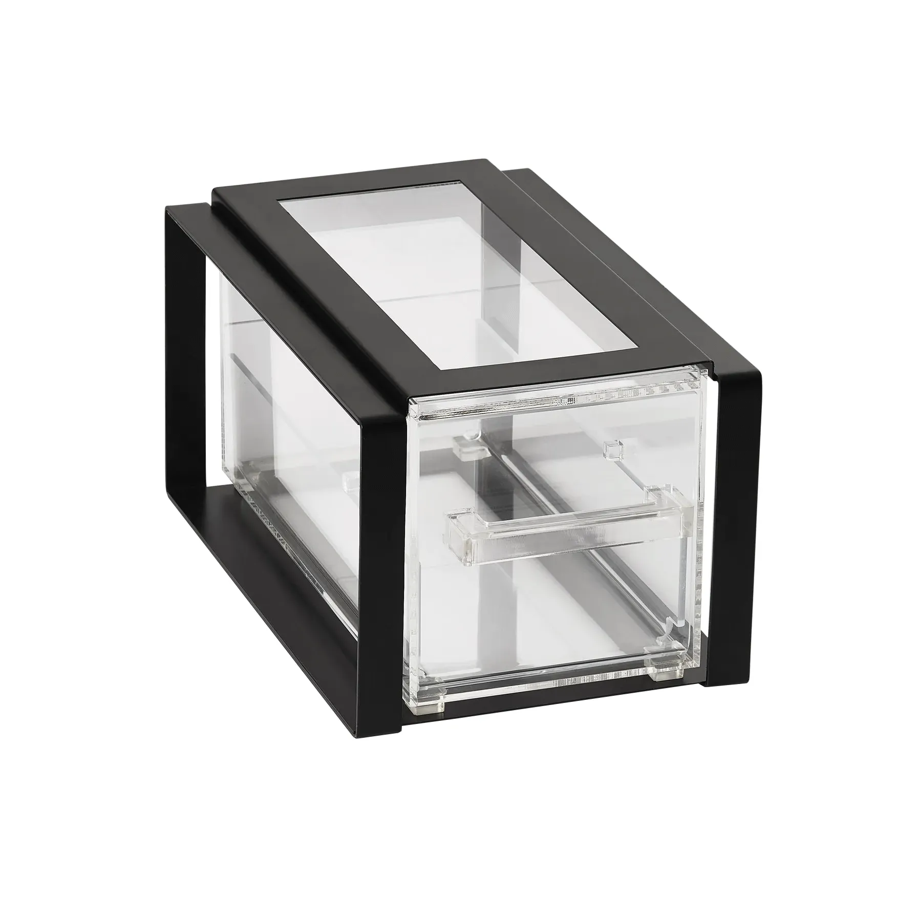 Culinary artistry redefined with Vollrath's SBB13F-06 Display Case. This non-refrigerated countertop unit is designed to enhance the presentation of your culinary creations. The cubic acrylic display system measures 9-1/16"W x 14-1/2"D x 7-7/8"H, providing ample space to showcase your delectable dishes. The 1/3 size clear acrylic display bin comes with a convenient drawer, allowing for easy access and organization. The black frame adds a touch of elegance to any restaurant setting. With the included metal black frame, 1-1/3 case with drawer, reusable chalk labels, and box of chalk, this display case is ready to elevate your food presentation game. NSF certified, this Vollrath display case is built to meet the highest standards of quality and safety. Whether you're showcasing pastries, appetizers, or desserts, this display case is a must-have for any commercial restaurant looking to impress their customers.