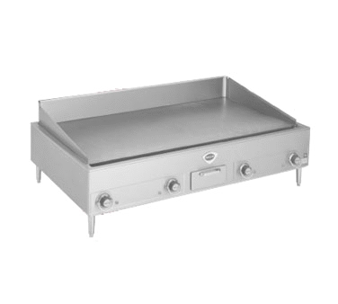 Culinary artistry redefined, the Wells G-24 Electric Countertop Griddle is a must-have for any commercial restaurant. With its smooth polished steel griddle plate, this griddle provides a spacious 46-7/8" W x 24-5/16" D cooking surface, allowing chefs to cook multiple dishes simultaneously. The stainless steel construction ensures durability and longevity, making it perfect for high-volume use. The zoned thermostatic heat control allows for precise temperature adjustments, ensuring consistent cooking results every time. The removable splashguard helps to contain any splatters or spills, keeping the cooking area clean and safe. Additionally, the 4" adjustable legs provide stability and flexibility in any kitchen setup. This griddle is UL, NSF 4, CE, and CSA certified, guaranteeing its quality and safety. Elevate your culinary creations with the Wells G-24 Electric Countertop Griddle.