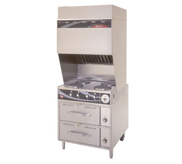 Equip your commercial kitchen with the Wells WV-4HFRW Range, Ventless, Electric. This versatile and efficient cooking equipment is a must-have for any restaurant. With its four French plates and thermostatic controls, you can easily cook a variety of dishes to perfection. The self-contained hood system ensures that your kitchen stays clean and free from smoke and odors. Made with stainless steel construction, this range is durable and easy to clean, making it ideal for busy commercial kitchens. The RW-26 drawer warmer base provides additional storage space for keeping your food warm and ready to serve. The front legs and rear casters make it easy to move and position the range wherever you need it. This cUL-certified range is a reliable and safe choice for your restaurant. Don't forget to stock up on replacement filters, including the pre-filter and HEPA charcoal filter pack, to keep your range running smoothly. Upgrade your kitchen with the Wells WV-4HFRW Range, Ventless, Electric.