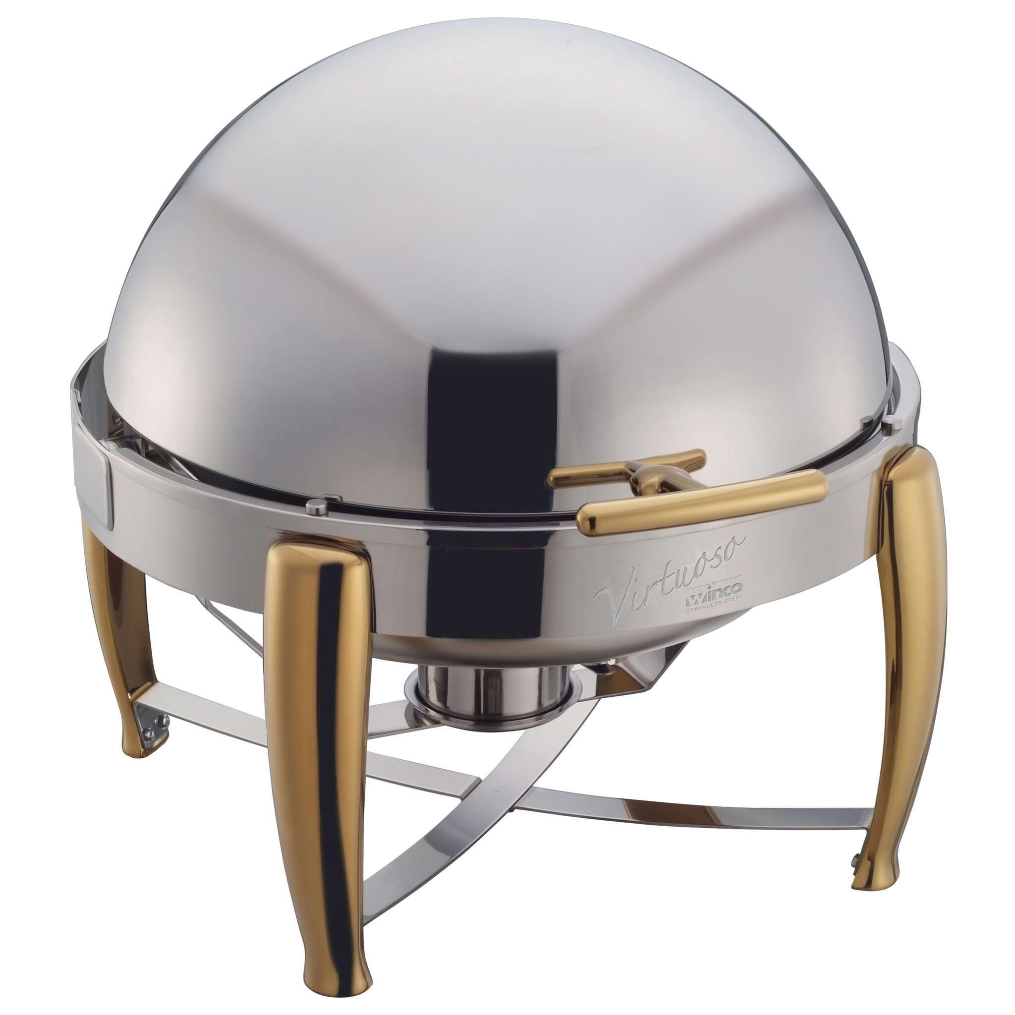 Crafted for the discerning chef with an eye for elegance and functionality, the Virtuoso Chafer by Winco is the epitome of sophistication in buffet service. This 6 qt. round roll top chafer, model 103A, is designed to elevate your restaurant's presentation while ensuring optimal food quality and temperature.