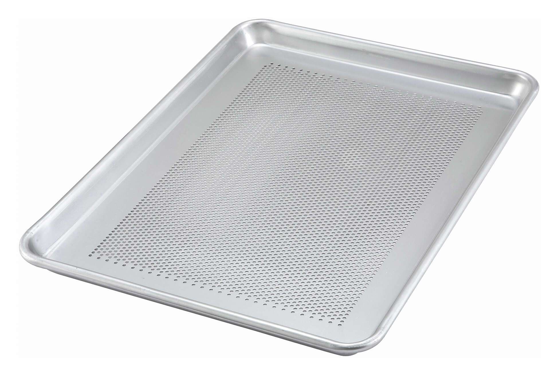Unleash the potential of the kitchen with the Winco Sheet Pan. Designed for the demanding environment of a professional restaurant, this full-size sheet pan measures 26 x 18 inches, providing ample space for baking, roasting, and cooling a variety of dishes. The perforated design, featuring 18-diameter holes, ensures even heat distribution and optimal airflow, resulting in perfectly cooked and crisped foods every time.