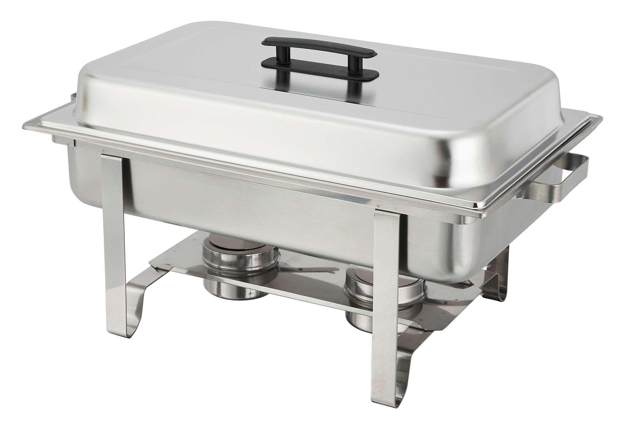 The chafer includes a water pan and a food pan, providing everything you need to keep your dishes at the perfect serving temperature. The two fuel holders ensure consistent heat distribution, so your culinary creations remain warm and appetizing throughout service. The plastic handle on the cover offers a comfortable grip, making it easy to lift and serve, while the lid clip keeps the cover securely in place when not in use.