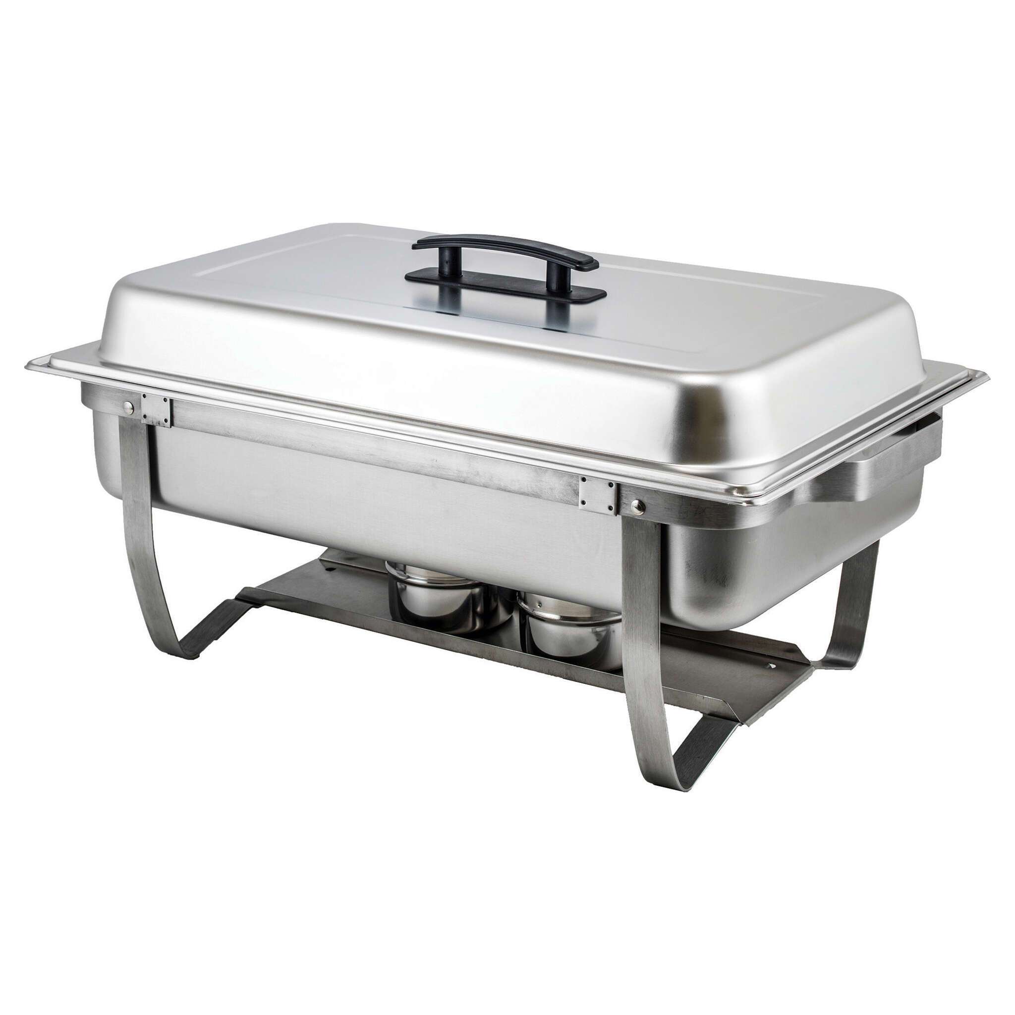 Included with the Winco Chafer 8 qt. Full Size Rectangular are a water pan, food pan, cover, and two fuel holders. These components work together seamlessly to keep your dishes warm and ready to serve. The water pan ensures even heat distribution, while the fuel holders provide a consistent heat source, keeping your food at the optimal serving temperature.