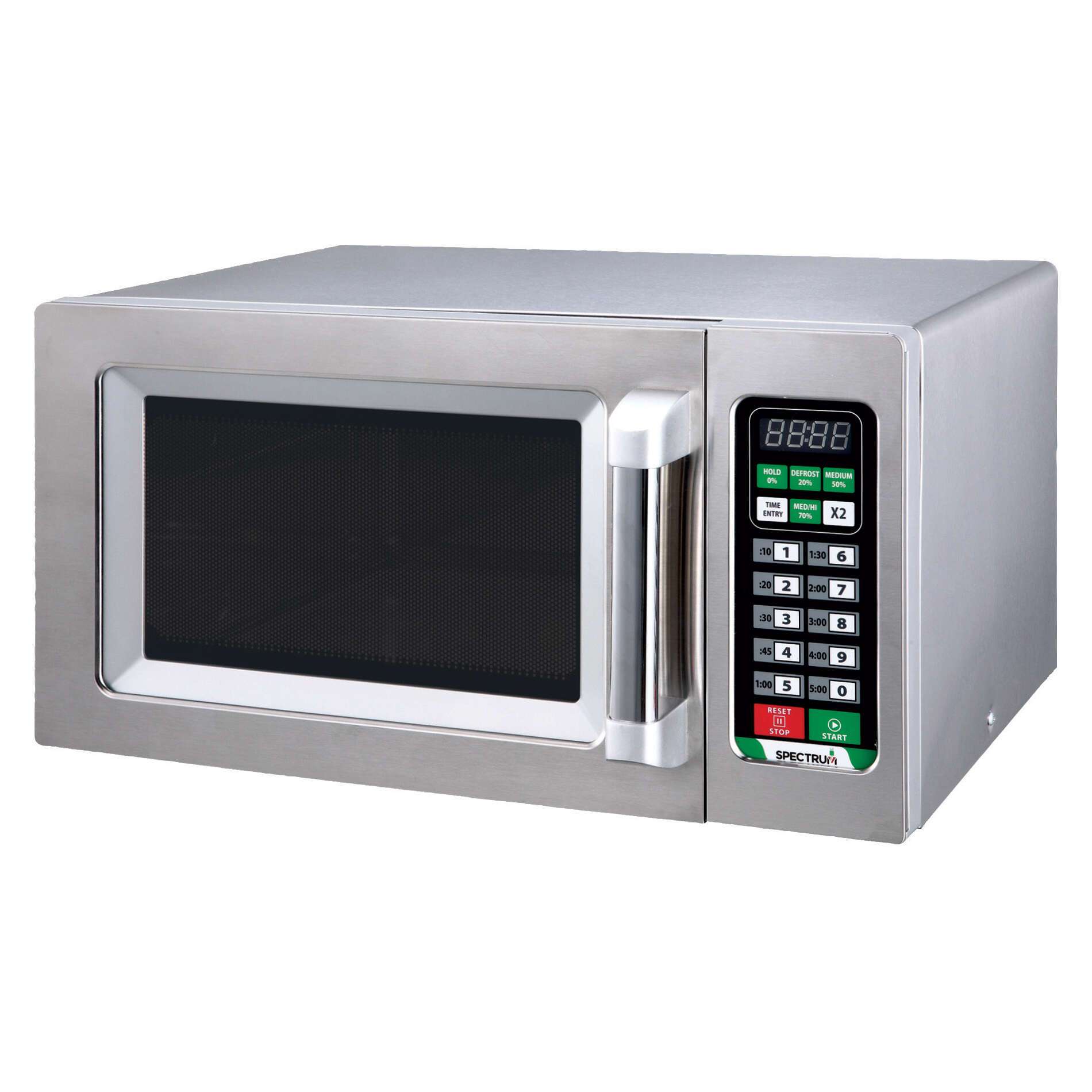 Elevate culinary creations with the Spectrum Commercial Microwave from Winco. Designed specifically for the demanding environment of a restaurant kitchen, this microwave offers a robust .9 cubic feet capacity, making it perfect for heating and cooking a variety of dishes. With a powerful 1000 W output, it ensures quick and efficient cooking, saving valuable time during peak hours.