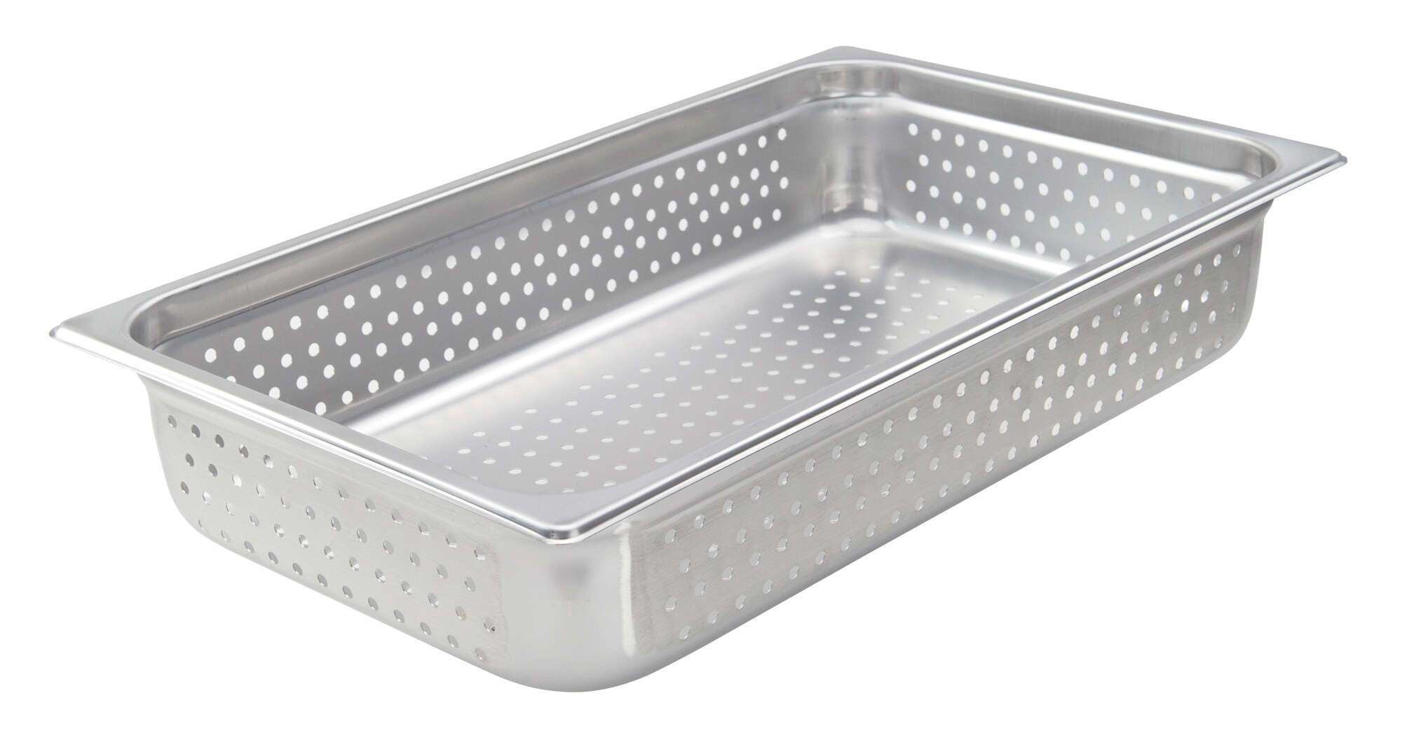 A must-have for any home cook using the Winco Steam Table Pan, this full-size, perforated pan is designed to meet the rigorous demands of a professional kitchen. Crafted from 22 gauge heavy-weight 18/8 stainless steel, this pan ensures durability and longevity, making it an essential addition to your restaurant's kitchen arsenal.