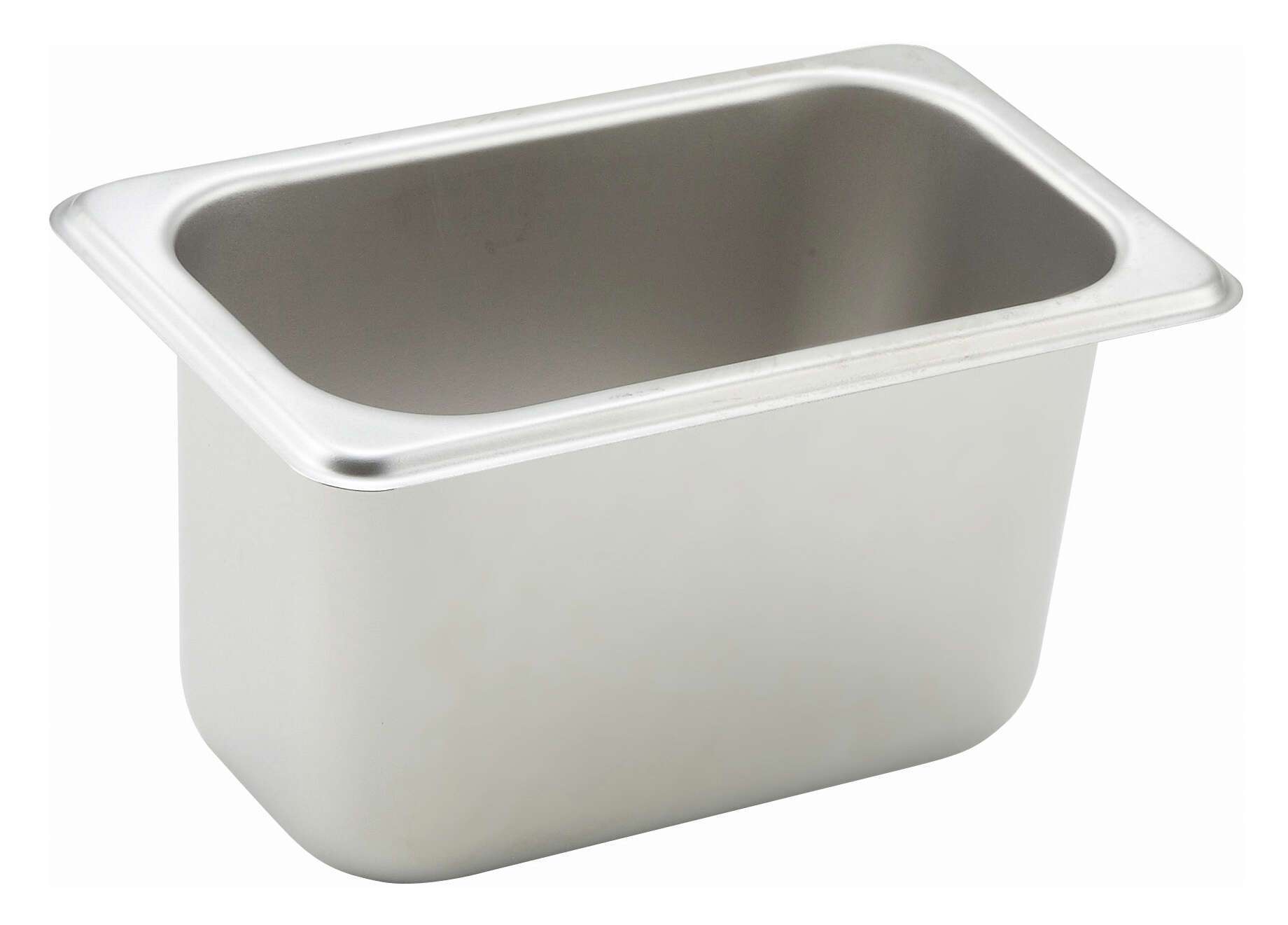 The Winco Steam Table Pan measures 19 inches in size, with dimensions of 6-3/4 x 4-1/4 x 4 inches deep. These dimensions make it versatile for a variety of food service applications, from holding hot entrees to keeping side dishes warm. The straight-sided design maximizes capacity and allows for easy stacking and storage, optimizing your kitchen space.