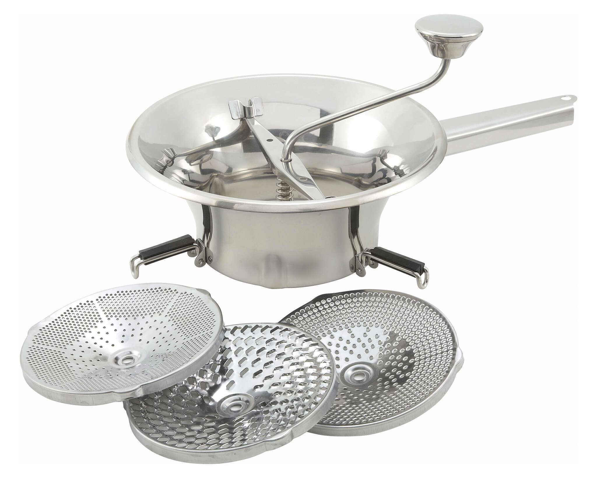 The Winco Food Mill comes equipped with three interchangeable cutting plates, allowing chefs to achieve the perfect consistency for their dishes. Whether you need a fine, medium, or coarse texture, this food mill adapts to your culinary needs, making it perfect for preparing sauces, soups, purees, and more. The medium plate, in particular, is excellent for achieving a smooth yet substantial texture, ideal for a wide range of restaurant recipes.